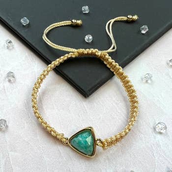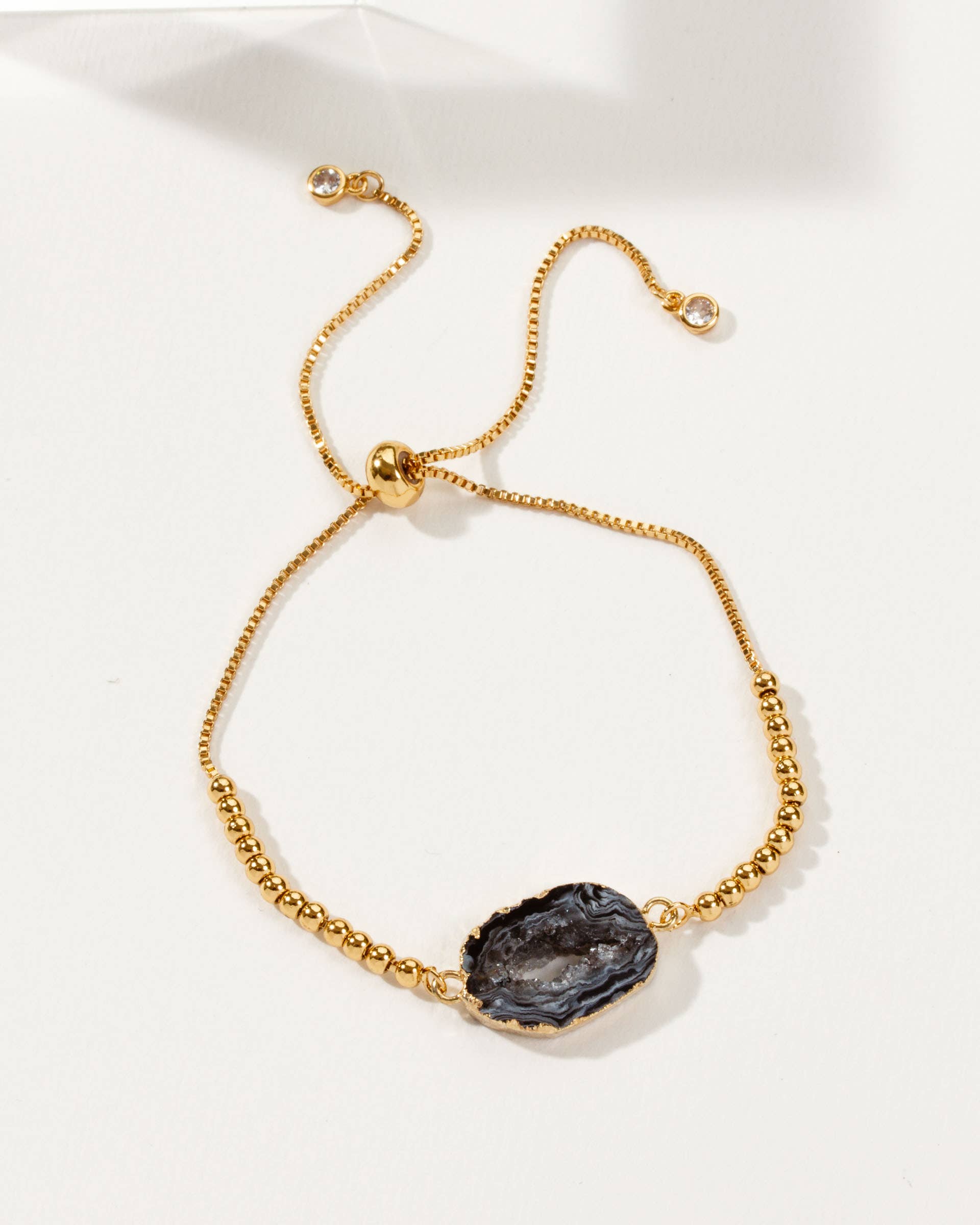 Style Details: Color, size, and shape may vary. Teal tone. Genuine Geode Adjustable Bracelet 14KT Gold Plated Brass
