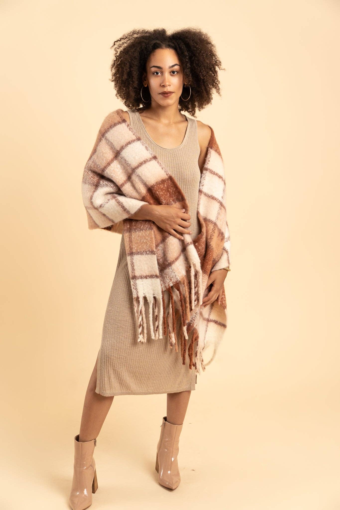 The softest scarf you will find this winter! The check pattern will never go out of style, making this a closet staple. This scarf is long so you are able to tie it multiple ways. Matches perfectly with the rest of our winter designs.