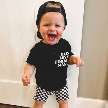 Mad love for my Mama The perfect tee for your little whose got Mad Love for MAMA! The best gender neutral design. Front pocket image. Printed on Bella Canvas, TTS