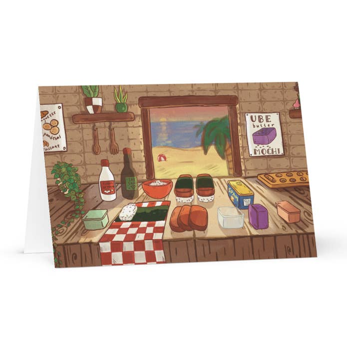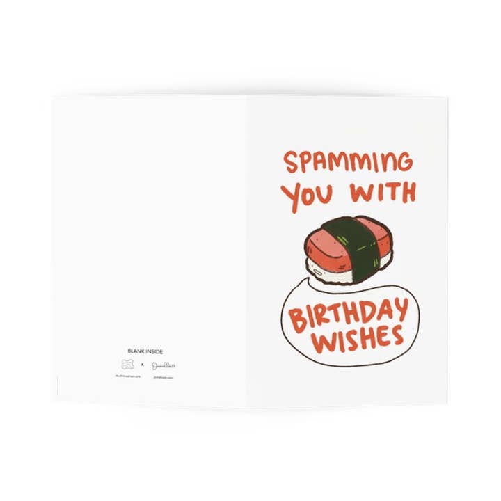 You've got mail! It's...spam? Multiple spam musubis? Are you sure you want to open it? (if you look closer, you'll see that these spam musubis are drooling.) This multiple spam musubi with faces birthday wishes Art Print blank Greeting Card is a mix between an affordable art print and cute greeting card! It's blank on the inside so you can put in whatever you want :) The best part is, no one will want to throw away this greeting card since they'd want to post it up on their fridge or frame it as part of their wall gallery. 4.25x5.5 inches Glossy exterior, matte interior Comes with complimentary envelope