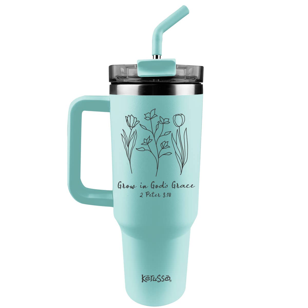 Kerusso 40 oz Stainless Steel Mug With Straw Blessing