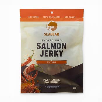 A nod to our family's go-to marinade—the sweet-salty glaze that turned backyard salmon nights into something special. A touch of ginger, a hint of garlic, and the kind of balance only wild-caught fish can carry. Wild-caught in Alaska, our salmon jerky is smoked low and slow with just a handful of real ingredients. It’s protein-packed (31 grams of protein!), omega-3 rich, and dangerously snackable. Clean fuel never tasted this good. Our product is whole muscle and top-quality Sockeye Salmon!