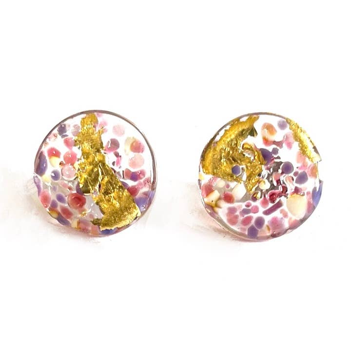Glass and Gold Midi Stud Earrings, Confetti
