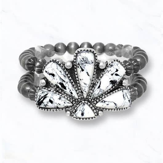Turquoise Stone Animal Print Leather Bracelet