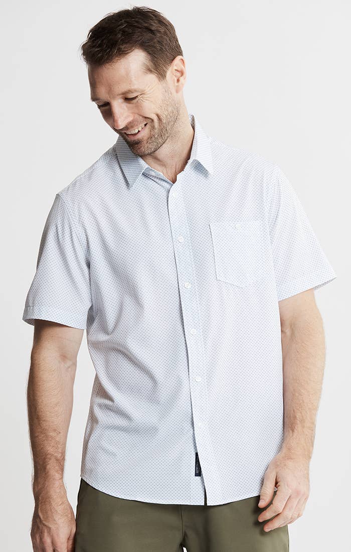 Poly Spandex Short Sleeve Tech Shirt- White Micro Poly Print