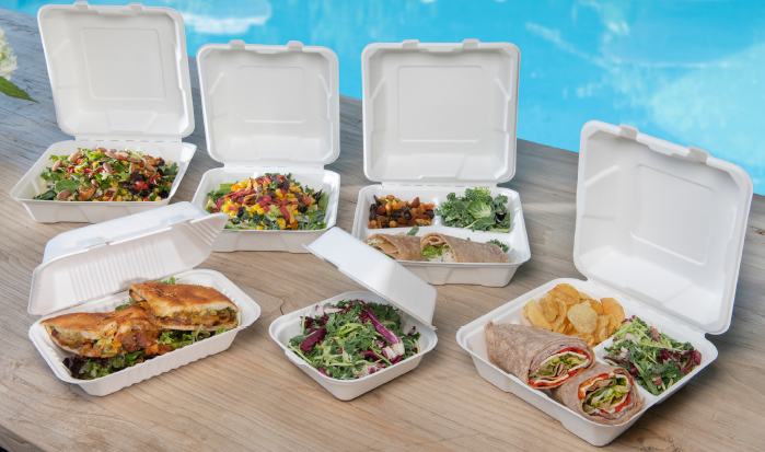1.0L Large Compostable Container Natural Sugarcane Sushi Trays with Lids