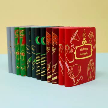 A lovely size to carry about for small notes and observations, wherever the inspiration finds you. Foil embossed illustrated journals, each with its own theme. A handy gift all year round. We have combined a gold foil for the outlines with a matt embossing for the colour making the details shine through. Made in Scotland using genuine leather sourced from a family run Scottish tannery using skins sourced as a by product from the meat and dairy industry. With plain white pages inside. 7.5cm x 9.7cm