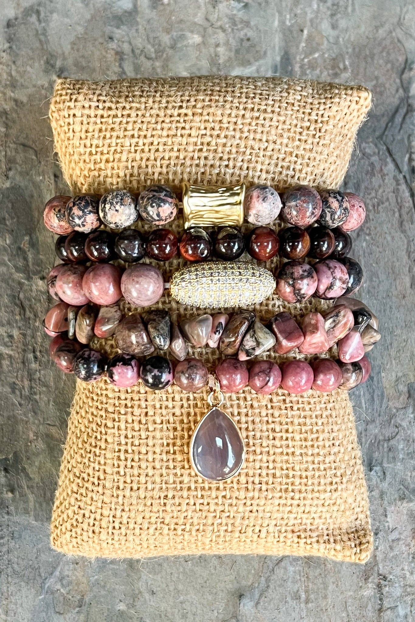 Wholesale Stone Stretch Bracelet, Boho Bracelet, Sweet Rose