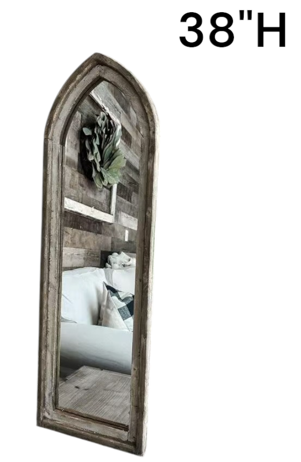 2PC Set Cathedral Wood Arch with Mirror, Natural - H-7