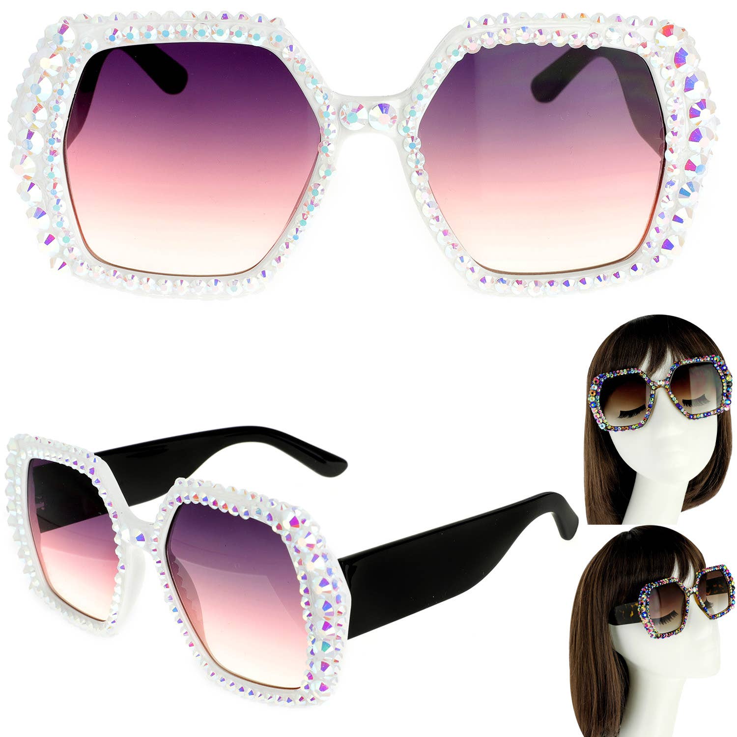 * Injection plastic frame * Use the most impact-resistant material available for lenses to offer maximum eye protection * Embellished with crystals, which are set by Jimmy Crystal's expert craftsmanship. This product provides unparalleled aesthetics to transcend elegance. * Eye/Bridge/Temple: 45/13/140 mm * Includes both a pouch