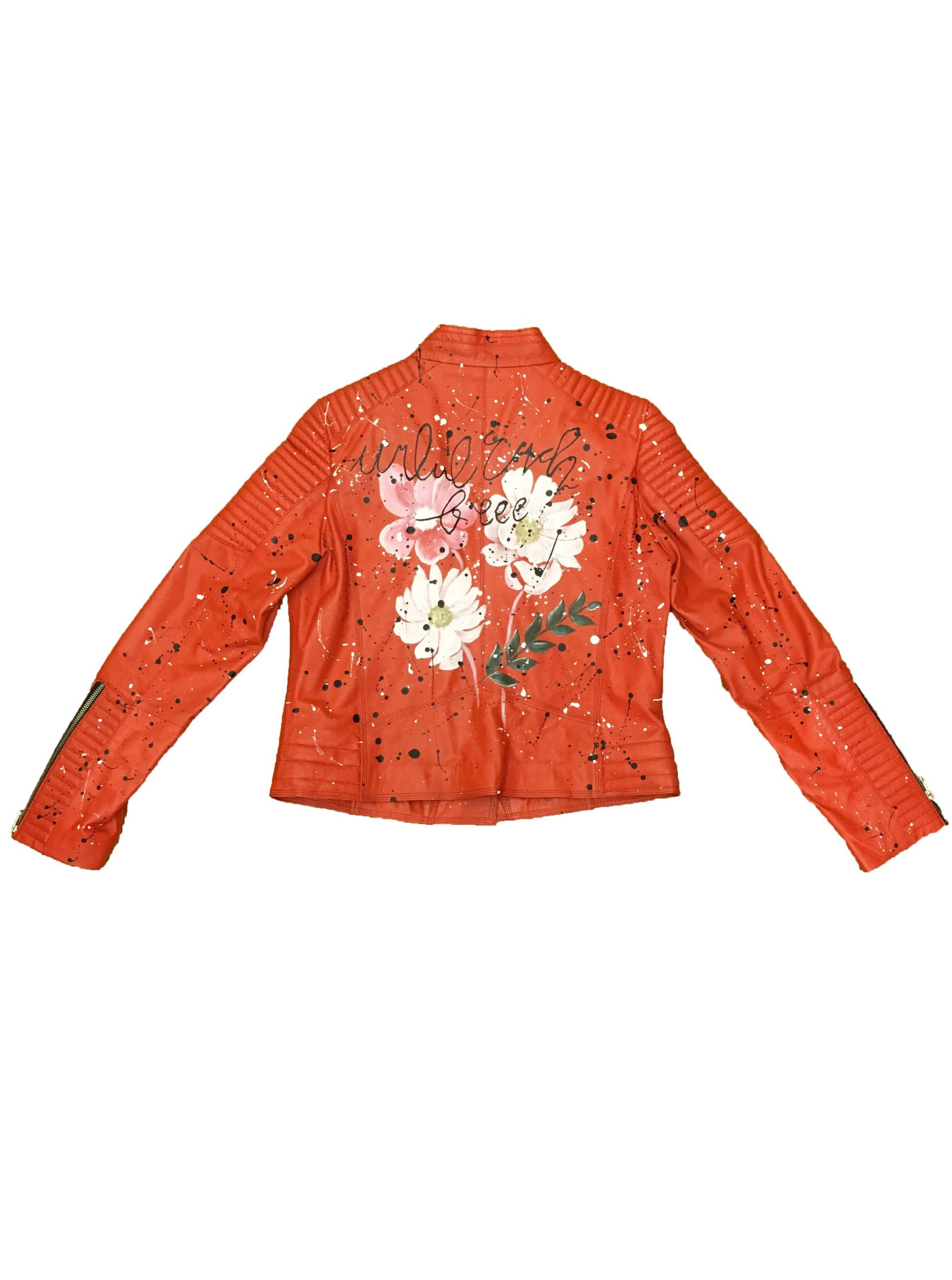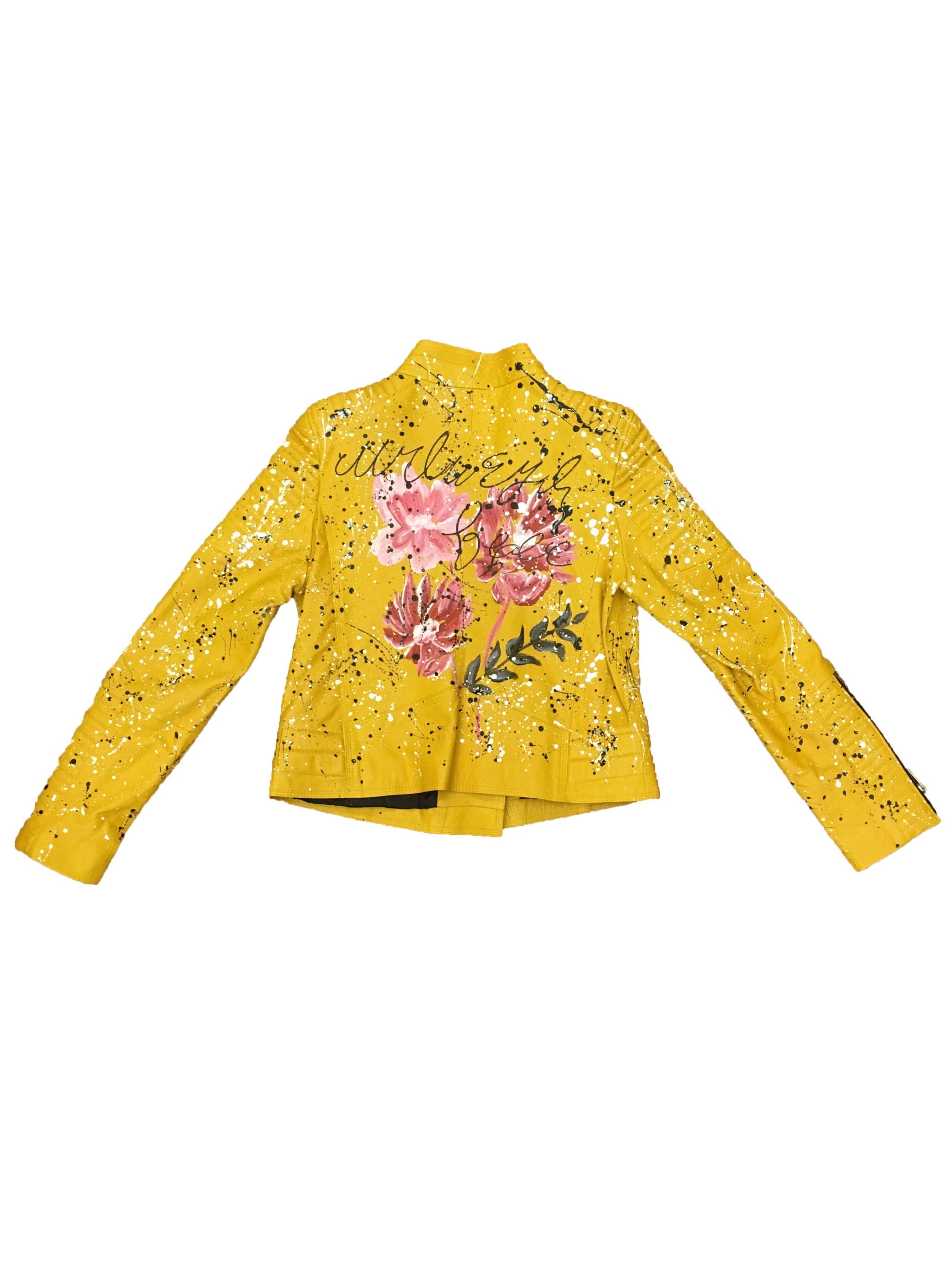 Biker jacket with belt, 2 zip pockets, zip closure ,zipped cuffs