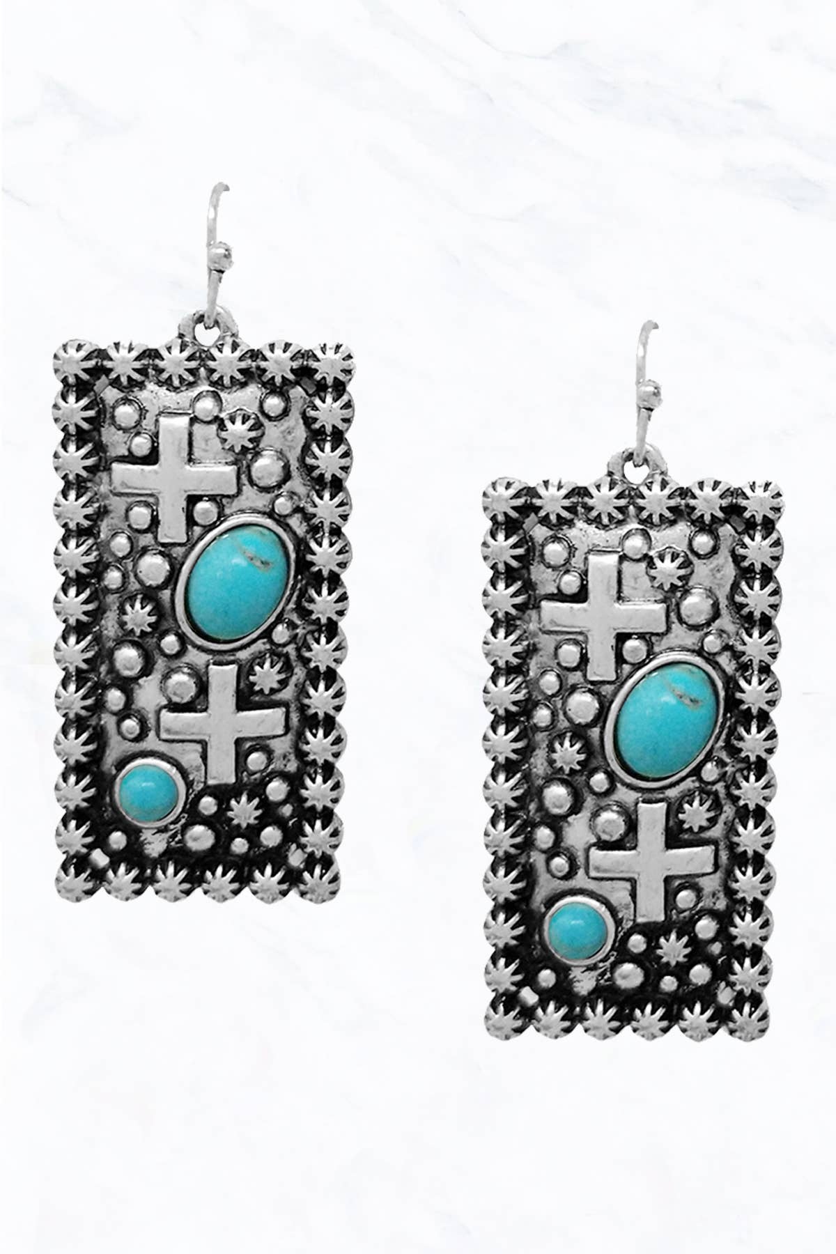 Silver Stars Collection - Wholesale Dangle Earrings - Zia Symbol French Wire Earrings0