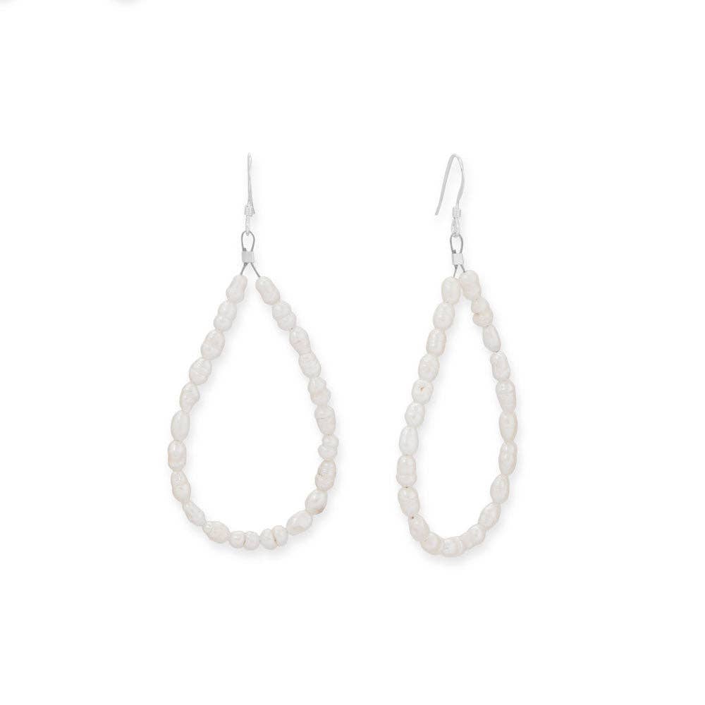 Crinkly Cultured Freshwater Rice Pearl Pear Outline Earrings