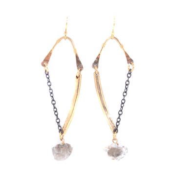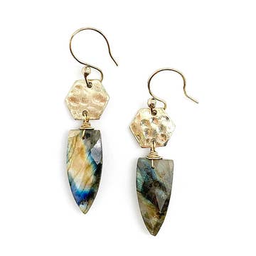 Flat point labradorite with brass om dangle earrings.
