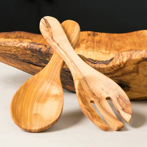 With its bold grain and rich color, our Olivewood Root Serving / Salad Bowl adds an eye-catching background for everything from tossed greens to pasta salad. Artisans hand turn the bowl from Italian olivewood, showcasing the dramatic variations in tone and pattern that make each one of a kind. - Natural variations in wood's color and grain pattern make each piece unique. - Size and shape may vary up to 1-2'' due to the handmade nature and material used. - Layered wood rings are sanded for a smooth, seamless finish. - Hand-wash and dry thoroughly. - Do not soak. - Periodically oil with olive or sunflower oil Crafted in the province of Umbria, Italy, our artisans use centuries-old tradition that produces unique pieces made from pure olive wood. Size: Small - appx. 12 - 14'' length Large: appx. 15 - 19'' length *Please note size and shape will vary by a couple of inches in any direction due to the nature of both olivewood and of handmade products.