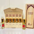 Experience the rich heritage of Nemat with this perfume oil discovery kit, featuring 2.5ml roll-on bottles of Amber, Egyptian Musk, Vanilla Musk, White Musk, and Musk Amber. Crafted with tradition and passion, each scent captures a unique facet, inviting you to indulge in an olfactory journey.