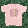 Sublimated on a Jerzees unisex fit tee. Material: 50% cotton/50% polyester Sublimation dyes the fabric of the tee and is more vintage in appearance than a screen print but has absolutely no feel on top of the shirt.