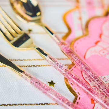 Pack: 20 spoons, 20 forks, 20 knives (20 Guests) Fork approx. length: 8" Knife approx. length: 9" Spoon approx. length: 8 ¼" Color: Pink Material: Plastic Disposable: One-time, single party use Recycling code: #5 PP Polypropylene BPA-free: Yes