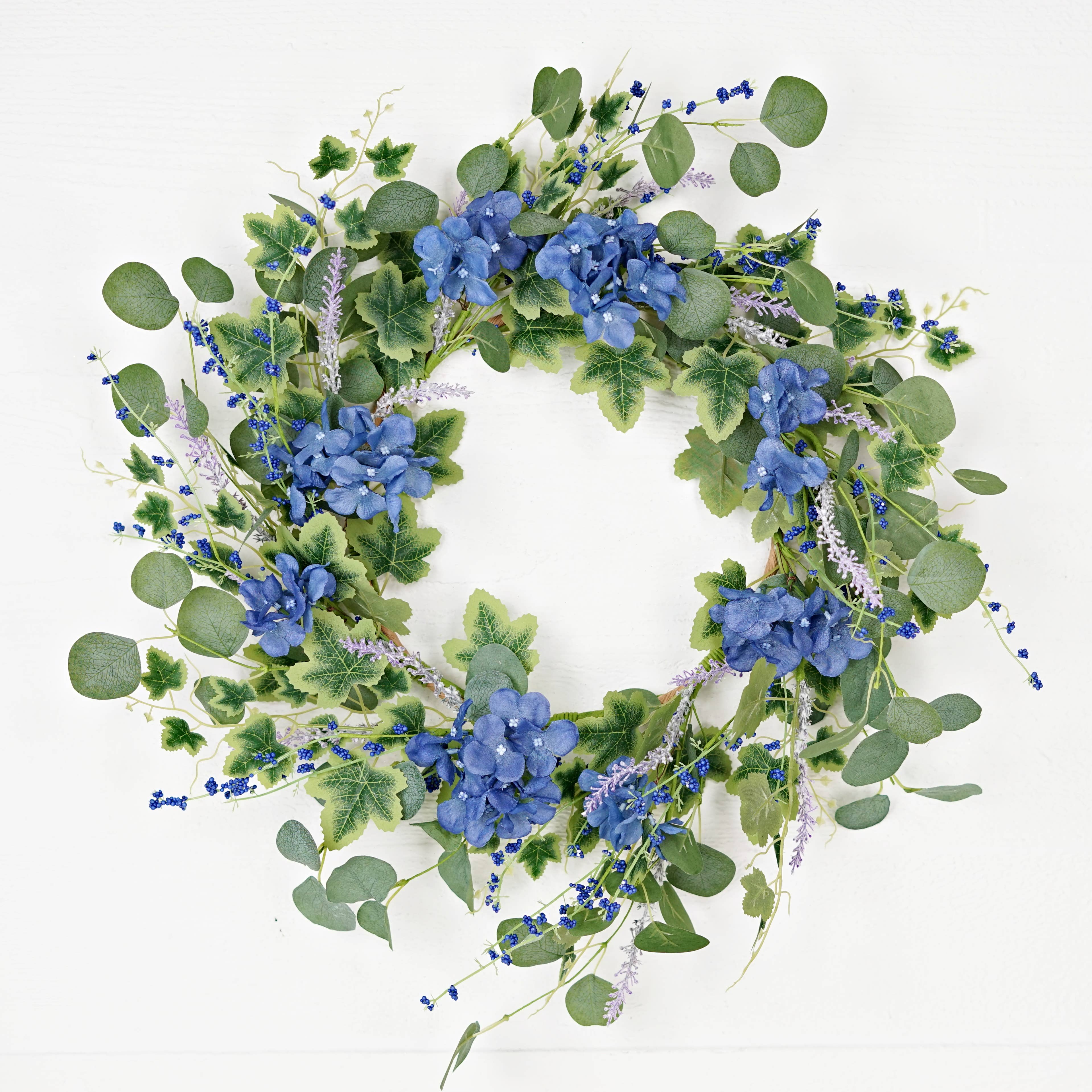 24" Mixed Blue Hydrangea Wreath - Lifelike Floral Decor