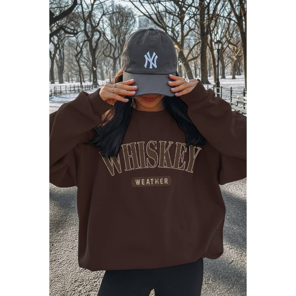 Graphic sweatshirt with an authentic vintage look and a softer feel that is only possible to achieve by using our special enzymes to dye and mineral wash processes. - Pre-shrunk - Long sleeves - Coldwater preferably like colors - No bleach - Tumble dry low - Model is wearing a size Small (LENGTH: 26" / BUST:46") Graphic tee & top garment dye. Screen printed t-shirts SWEATSHIRT , SWEATSHIRTS, CHRISTMAS, WHISKEY, WINTERSEASON, WESTERN