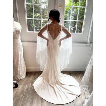 No bridal look is complete without a cape! This gorgeous Cathedral length handmade Pearl Cape is a unique finishing touch on your wedding day. It’s studded with pearls. Attach the cape to your dress with pin clips for a unique look. Size: 3 meters long Colour: Off-White Pin Clips -- We know firsthand that a bride feels their best when they look their best. The importance of a simple piece, such as a veil, belt or headpiece can not go understated, and will spruce up your gorgeous wedding dress in a way that will make you feel beautiful! The moment you put on your final accessories will truly make you feel like you're ready to start the beginning of your love story.