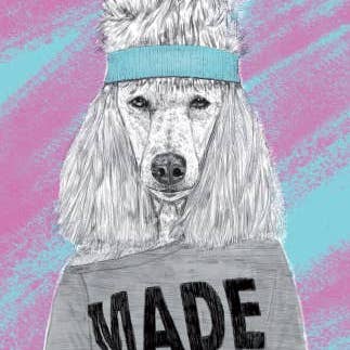 Motivating Yay dancing dog card with glasses pet card graduation card Hand painted acrylic and ink Heavyweight uncoated card stock Kraft brown envelope Blank inside 4.25 inches x 5.5 inches Made in San Francisco, California