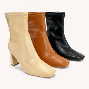 Full inside zipper 2 inch heel height Lightly padded footbed Synthetic upper Synthetic lining Rubber outsole Imported Our popular donut heel is back in mini-size. This bootie with a rubber sole is color-matched and adds a sleek finish to your look day or night.
