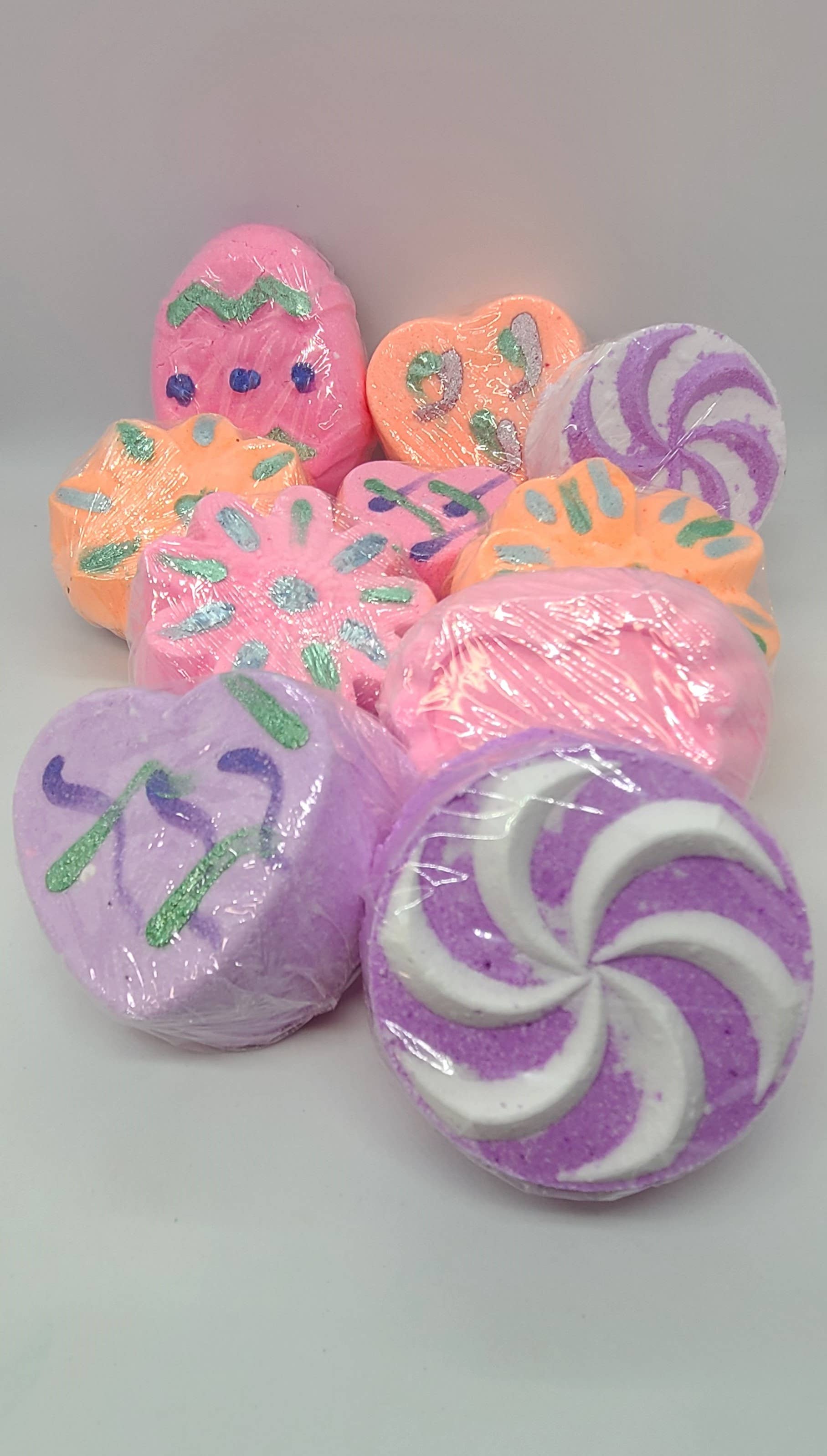 They arrived with only one slightly broken and that was due to the post office damaging the corner of the box, I enjoyed testing it in the bath very much. The packaging was great and took time to unwrap them all. They are all well made and you can see how much she puts into the bath bombs. Plan on ordering more for the store as these sell down. Thanks!
