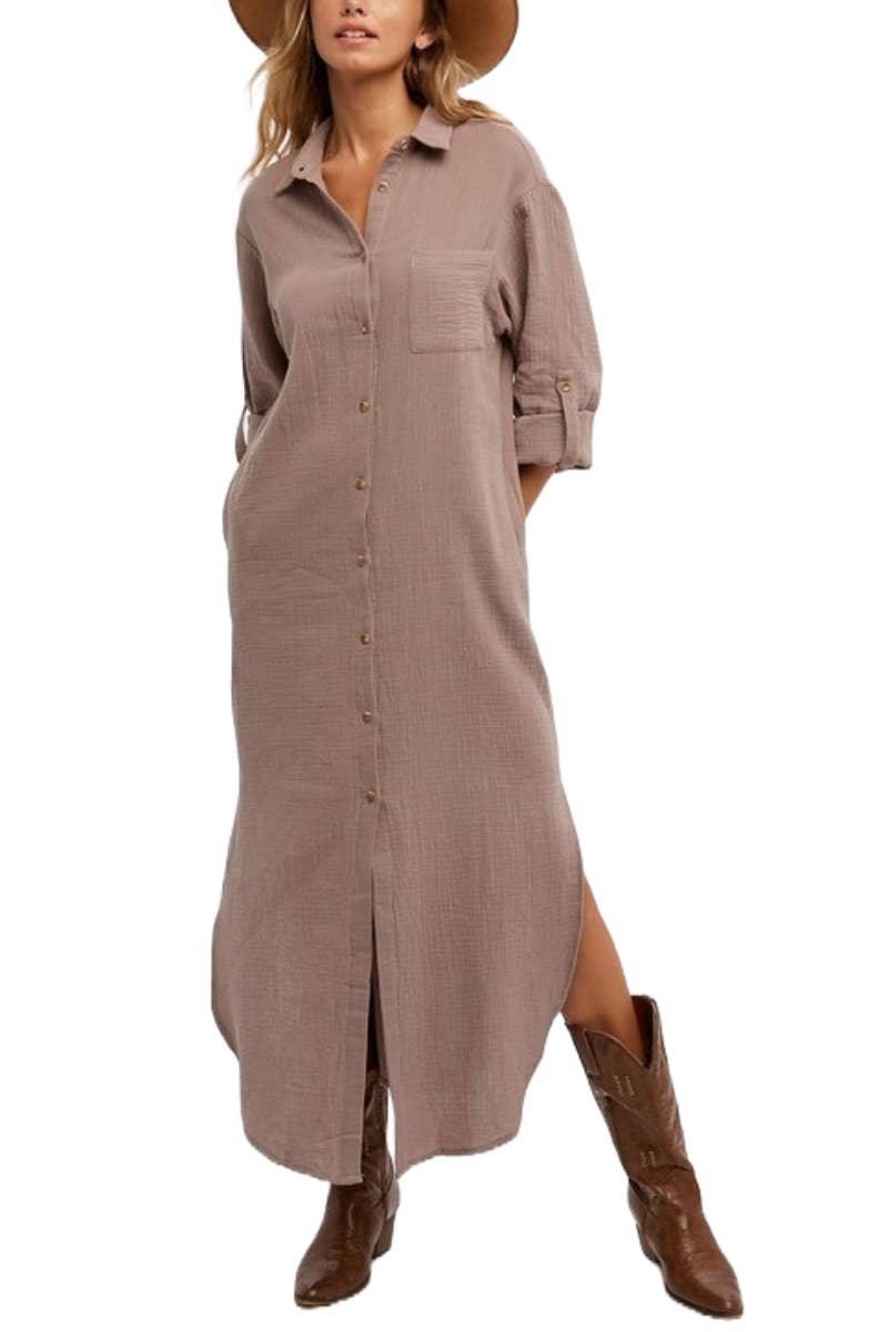 - MINERAL WASHED COTTON GAUZE FABRIC - COLLARED - FRONT PLACKET WITH BUTTON DOWN - MINI RUFFLE SLEEVE DETAIL - SHORT SLEEVES - SIDE POCKETS - SHIRTTAIL HEM - DOLMAN STYLE - RELAXED FIT - MINI LENGTH SHIRT DRESS MODEL IS 5'8" AND WEARING SIZE SMALL # spring, summer, mini dress, collar, button down, button up, buttoned, buttons, ruffles, ruffled, pocket, loose fit, mineral wash