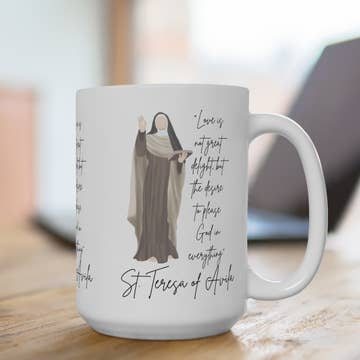 Start your day with faith and inspiration using our Saint Dymphna Ceramic Mug. Designed to uplift and encourage, crafted from durable ceramic, it’s perfect for enjoying coffee, tea, or any favorite hot beverage. Ideal for personal devotion or as a thoughtful gift, this mug blends faith and function beautifully. Why You’ll Love It: 12 oz ceramic mug with devotional artwork on both sides Our mugs are printed in Austin, TX Durable ceramic build for everyday use Easy to clean and practical for hot beverages Inspiring faith-based design perfect for prayer time or reflection Thoughtful Catholic gift for confirmations, feast days, holidays, or parish events