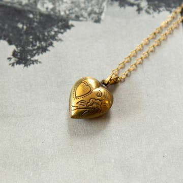 brass pendant with etched wildflower design. Can be opened!