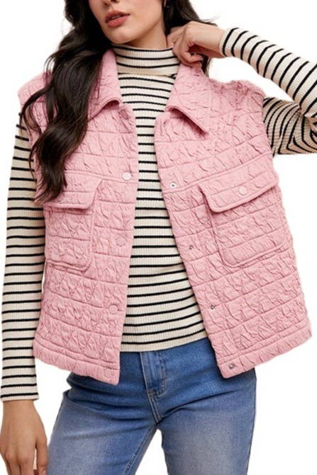 THIS PUFFER VEST FEATURED IN A SLEEVELESS SILHOUETTE AND BOXY, OVERSIZED FIT. PERFECT FOR LAYERING. ROOM FOR ALL TYPES FOR LAYERS UNDERNEATH. WIDE ARMHOLES. PERFECT STYLES FOR CASUAL EVERYDAY, CHILLY HIKES, AND WEEKEND CAMPING TRIPS. A QUILTED PUFFER FABRICATION FOR ALL YOU COLD WEATHER IN THIS SEASON. ACCESSORY OVER A TURTLENECK, SWEATSHIRT OR SWEATER FOR AN EXTRA LAYER. *DETAIL* -OVERSIZED BOXY FIT -FRONT-ZIP CLOSURE WITH SNAP BUTTON CLOSURE -BIG FRONT POUCH POCKETS -HIG COLLARD NECKLINE -QUILTED FABRICATION -CASUAL EVERYDAY FOR COMFY -PERFECT THROW-ON-AND-GO PIECE TO PAIR WITH ANY CASUAL LOOK -ADJUSTABLE DRAWCORD TO CINCH HEM -IMPORT
