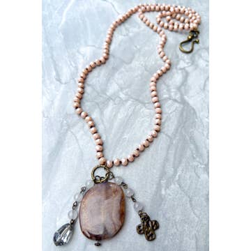 Wholesale Double-Strand Moonstone & Labradorite Necklace With Druzy Pendant