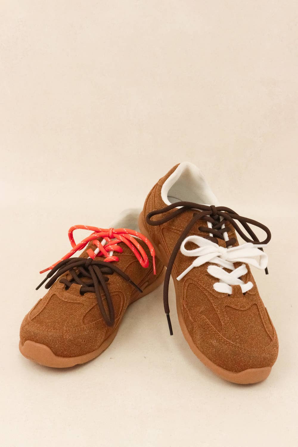 Meet the Rae Rae sneaker, your new go-to for both style and comfort in your active lifestyle. These sneakers feature a sleek, taupe upper with a contrasting suede panel, offering a modern, earthy look perfect for any casual outing. The thick, white midsole not only provides excellent cushioning for all-day wear but also adds a trendy, chunky aesthetic. The gum rubber outsole ensures great traction, making them ideal for both city streets and light sports activities. OOTD: Style them with your favorite athleisure wear for a sporty vibe, as shown with the tennis court setting, or pair with jeans and a casual tee for a laid-back day out. The Rae Rae sneaker is designed to keep you moving in style, whether you're hitting the courts or exploring urban landscapes. * SEE SIZE CHART FOR CASE BREAKDOWN * SNEAKER * ACCENT ON SIDES * COLORS: WHITE, TAUPE