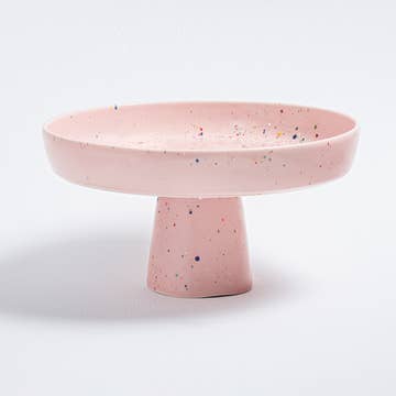 Elevate your celebrations with the New Party Cake Stand! Designed to bring joy to any occasion, its lively aesthetic and playful charm make every cake the centerpiece of the table. A true expression of the New Party Collection, it’s the perfect blend of elegance and fun. Dimensions: Diameter: 28cm Height: 12,5cm Our pieces are: Food safe. Cadmium Free. Material: Stoneware with less than 3% absorption. Our Party Collection features a special type of glaze that may exhibit areas where speckles become diffused due to the glass's reactive nature during processing. We find these unique, unpredictable variations to be the most beautiful aspect of the glaze.
