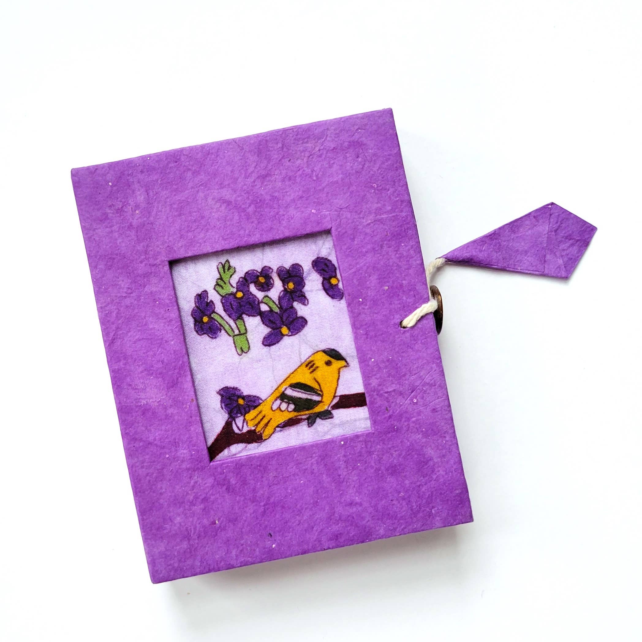 It could be the bright yellow color, or even the little black visor, but the goldfinch always brings a smile. Our fun little boxes are the perfect size for a small gift or as a highlight on a desk or dresser. In Nepal, leprosy has been eradicated, but the stigma remains. Those cured, and their families, are still seen as unclean. They earn a living making batik art, a process requiring multiple steps of dying and waxing cotton fabric. Batik cotton accent Each box individually wrapped One hand dyed paper box Button and string closure Due to hand drawn process, each will have variations *WFTO member* Made by hand is uniquely beautiful. Our products are made by humans, not mass produced on automated machines. Minor imperfections and variations are to be expected as a characteristic of the artistry. Please appreciate these individualities for what they are, a maker pouring their heart and soul into a unique and beautiful piece of work.