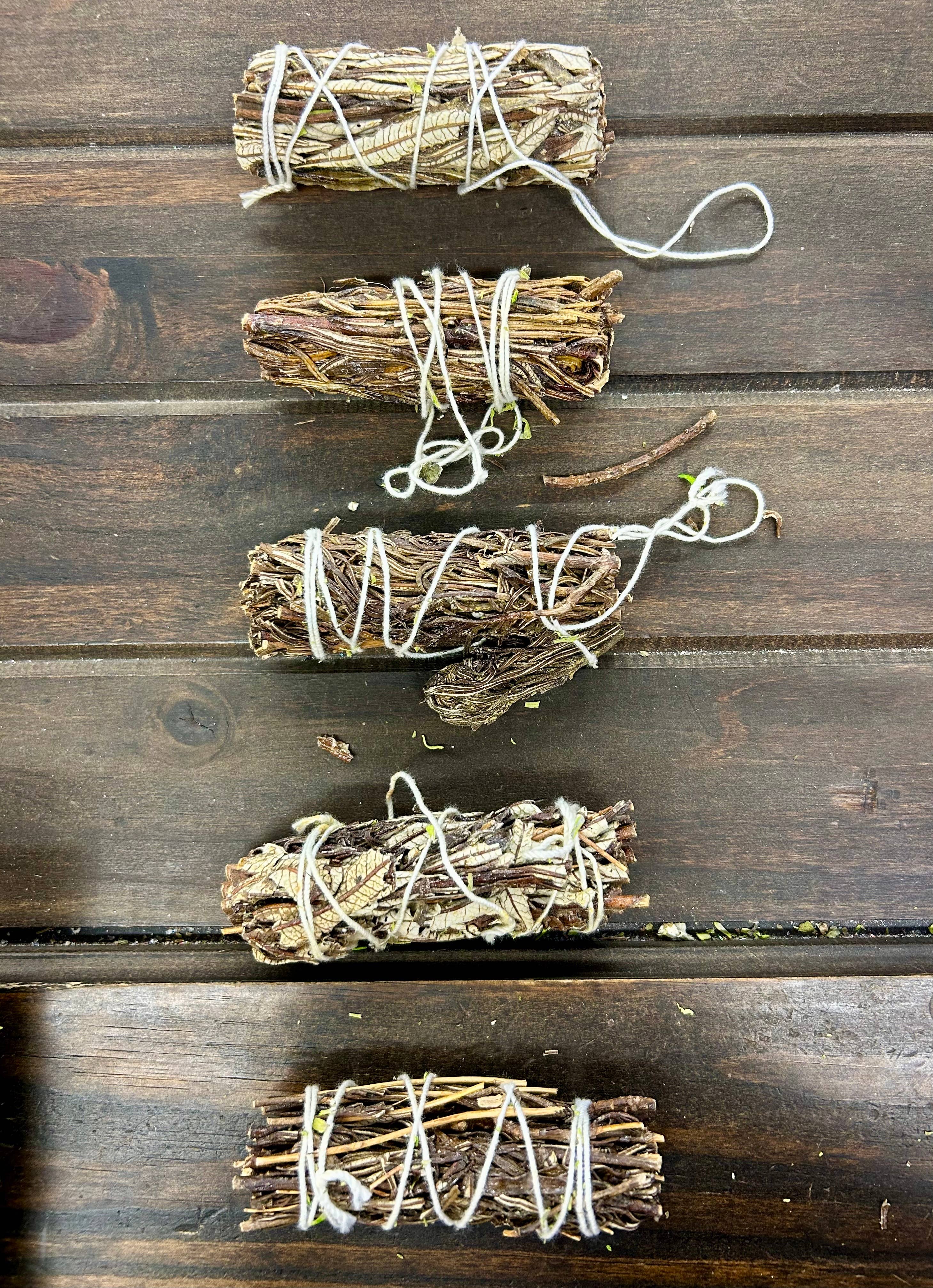 Premium quality hand-harvested and hand-tied California Yerba Santa torch sticks (4 inch). Here at Faiza Naturals, located in beautiful Southern California, we take pride in our meticulously hand-tied white sage bundles. We use absolutely no pesticides or growth hormones and sun dry our lush bundles for a simply amazing all natural product. We also have a variety of different white sage smudge combinations.