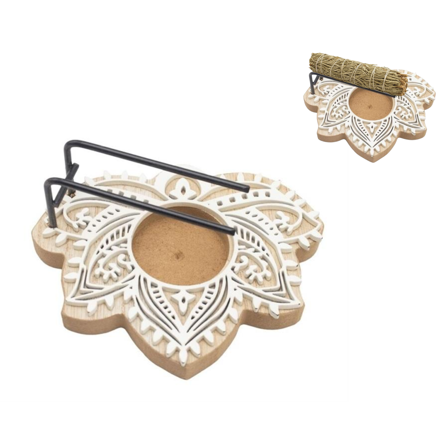 Palo Santo & White Sage Burner Lotus (Natural Wood)