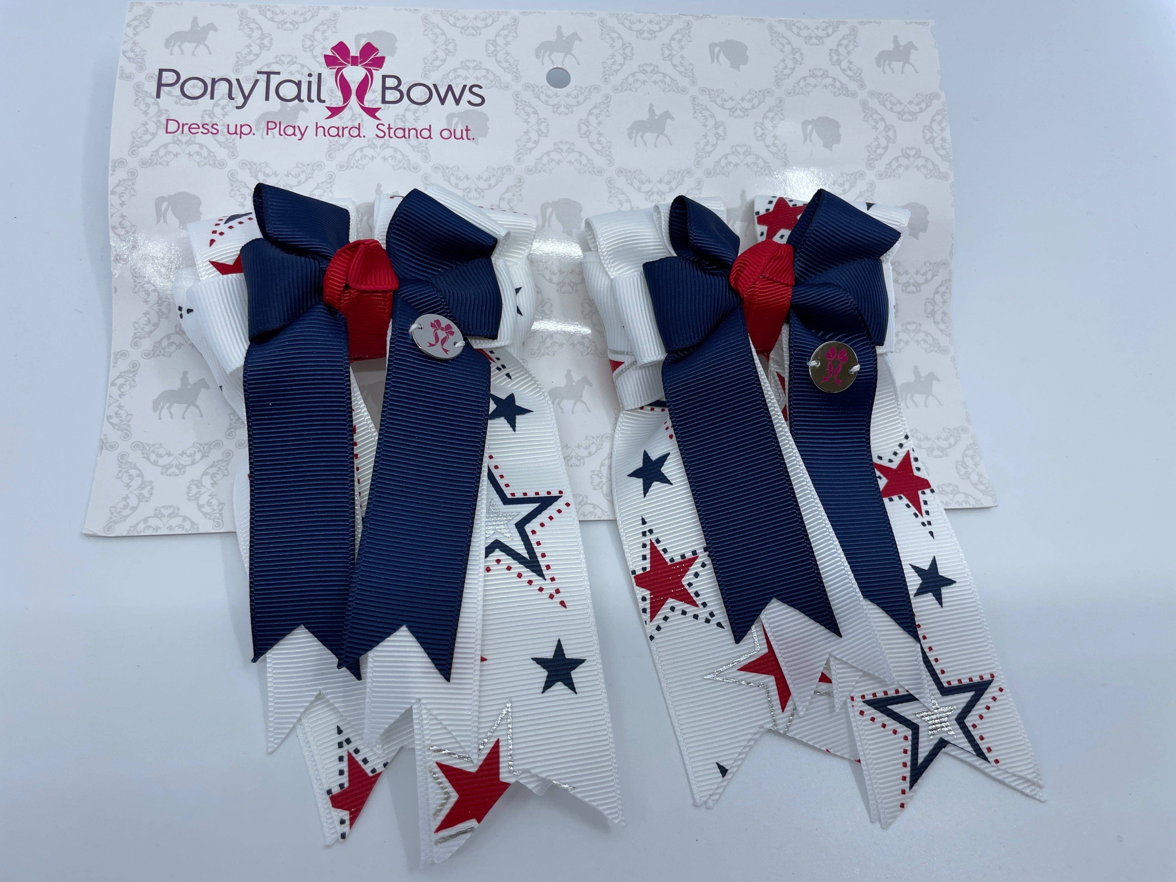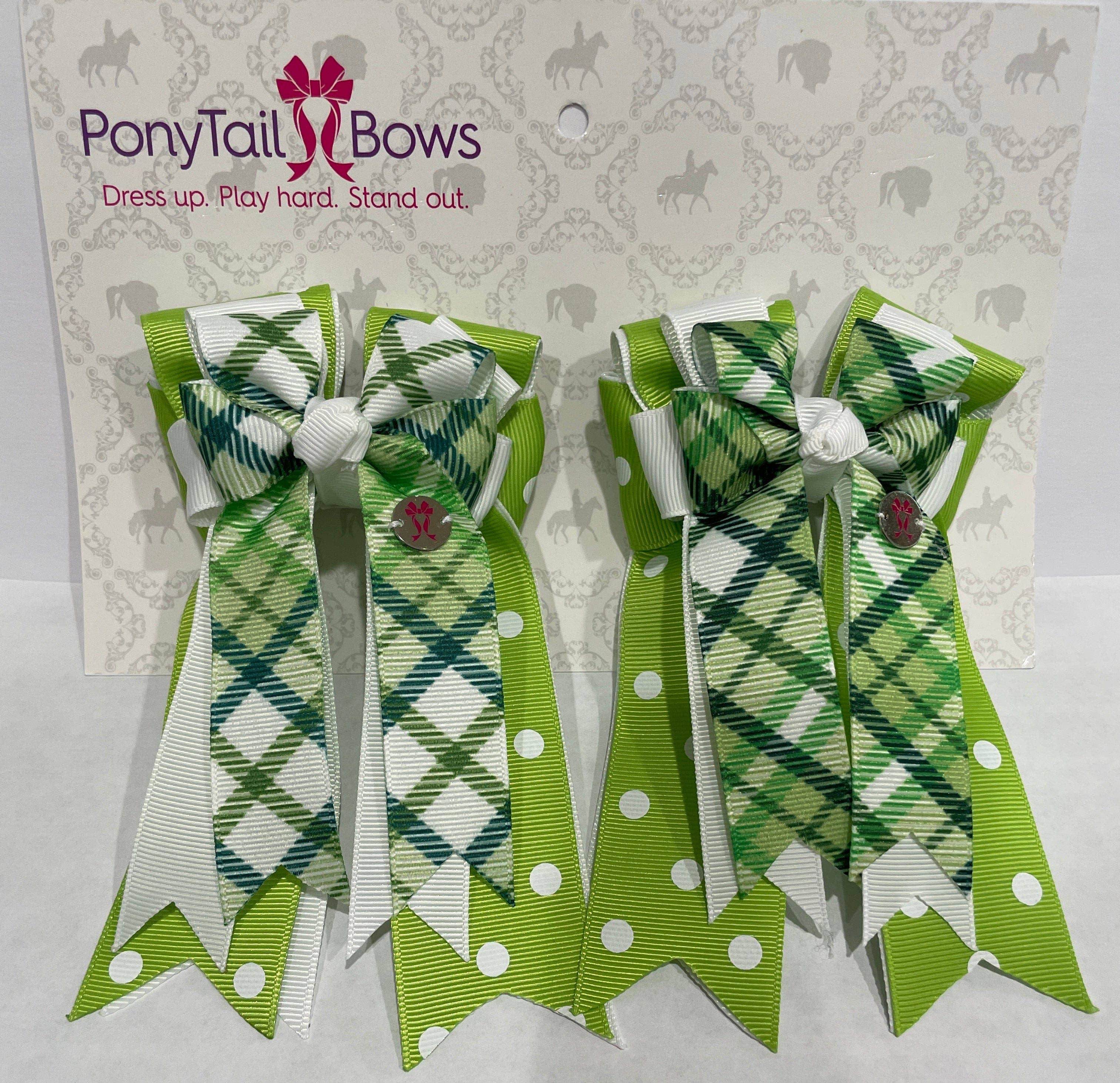 PonyTail Bows orgulha-se de ser um arco favorito para Pony Riders de toda a nação. Todos os nossos arcos são feitos nos EUA e fabricados artesanalmente pelos nossos incríveis criadores de arco. O objetivo da PonyTail Bows é dar poder aos jovens atletas à medida que iniciam as suas carreiras equestres. 🎀 Vestido para cima. Jogue duro. Destaque-se.