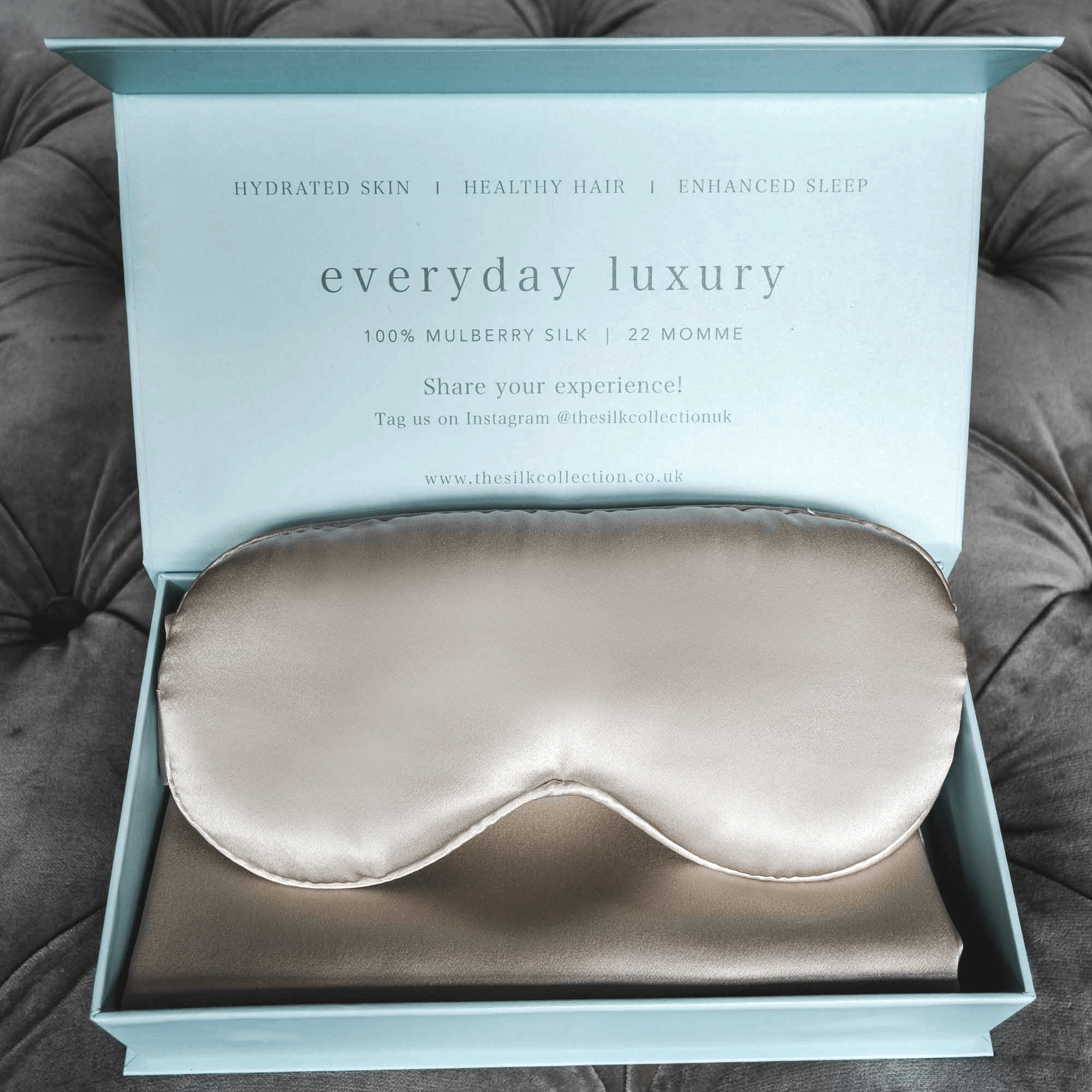 A Silk Collection é uma marca de estilo de vida e bem-estar sediada em Londres que combina luxos simples e intemporais com o autocuidado diário. A nossa coleção foi criada para elevar o seu dia - seja proporcionando-lhe um sono de melhor qualidade, melhorando a sua rotina diária de cuidados de pele e cabelo, ou criando uma forma fácil de enviar um pacote de cuidados único para entes queridos e dar-lhes um impulso de positividade. Orgulhamo-nos de doar 5% de todos os lucros à Mind Charity, uma instituição de caridade focada em melhorar a consciencialização e o apoio à saúde mental. Agora, mais do que nunca, é importante investir no autocuidado e no nosso bem-estar geral. Um sono de alta qualidade é um dos contribuintes mais importantes para o nosso bem-estar físico e mental geral. A nossa coleção é o presente de luxo perfeito que também oferece uma ampla gama de benefícios de beleza e bem-estar. A seda de amoreira é universalmente aceite como a melhor qualidade de seda do mundo, proporcionando inúmeros benefícios para a sua pele, cabelo e qualidade do sono.