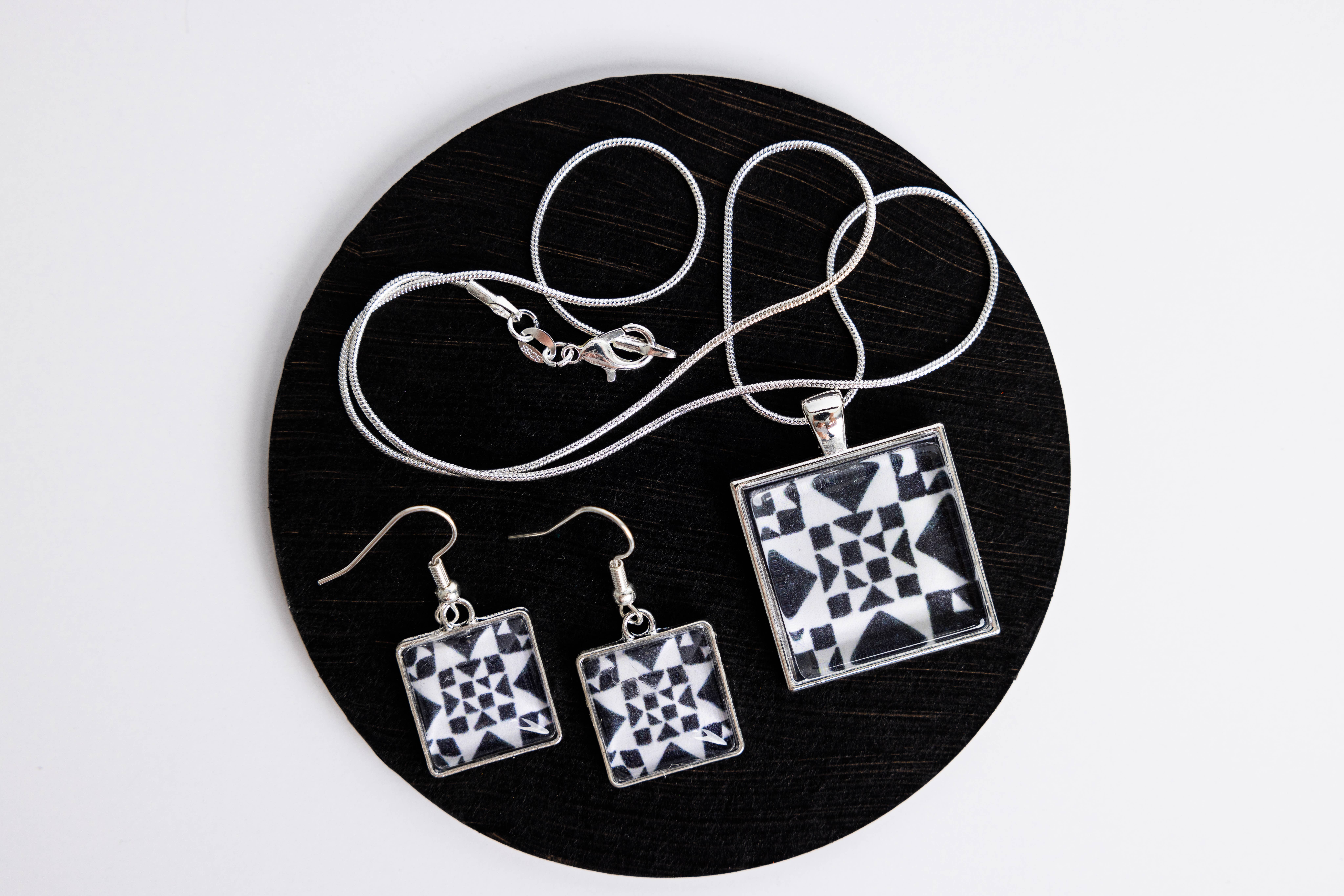 A Quilt Design Jewelry desenha e vende as suas joias únicas de quilt para boutiques, lojas de presentes de museus, lojas de quilts, galerias de fibras, lojas de moda feminina e de vestuário. As nossas joias são feitas a partir dos nossos designs e combinações de cores originais, disponíveis apenas connosco. No nosso pequeno estúdio de artista, criamos manualmente as nossas peças para si e para os seus clientes. Os designs incluem peças de quilt americanas modernas, contemporâneas, vintage e tradicionais, todas com os seus próprios nomes. Esperamos que goste de vendê-las tanto quanto gostamos de as fazer para si. Feito nos EUA.