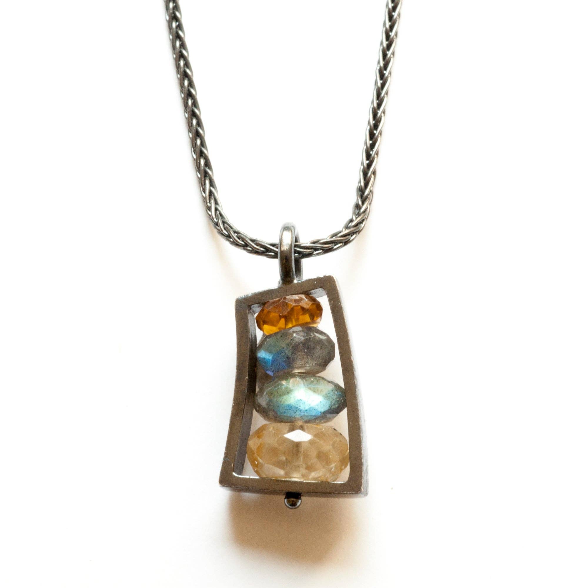 Minha abordagem à fabricação e design de joias é informada pelo meu treinamento em arquitetura. Movimentos modernistas como a Escola Bauhaus, a arte de vanguarda russa e a estética do design de meados do século XX são minhas principais inspirações. Meu objetivo é alcançar harmonia em repetições modulares e variações em formas geométricas. Principalmente autodidata, evito técnicas e conexões tradicionais de cravação de pedras. Meu trabalho é reconhecido pelo método único de capturar pedras dentro de estruturas de metal, criando espaço negativo como parte integrante da composição. O uso de fios finos para manter os elementos unidos é outra técnica não tradicional que permite movimento e flexibilidade estrutural. A combinação de materiais e métodos exclusivos resulta em peças alegres de arte vestível. Todo o trabalho é feito à mão no Brooklyn usando prata esterlina, bimetal de ouro 18k e pedras e minerais semipreciosos.