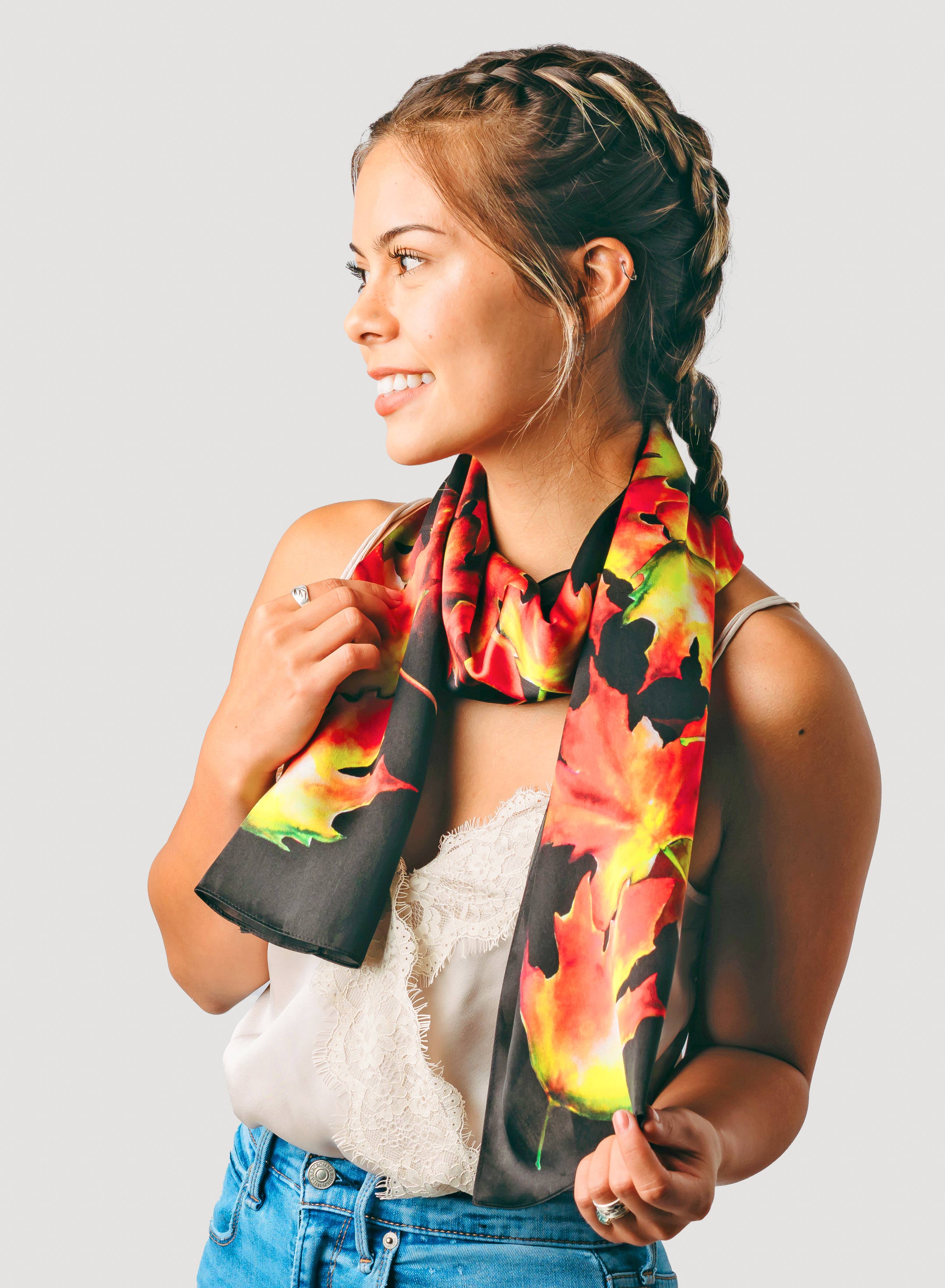 Tina Gleave é uma pintora mestre de seda que cria pensando em você. Seus designs são inspirados em seu ambiente natural no Condado de Humboldt, Califórnia, e são usados em todo o mundo. Começando com a pintura manual do desenho diretamente na seda, Tina inicia seu processo usando corantes de seda e pincéis de cauda de esquilo. Uma vez que ela tenha concluído seu design, ele é definido a vapor para maior durabilidade. Uma vez que ela está feliz com o resultado, ele é fotografado e, em seguida, impresso digitalmente diretamente em 100% seda para se tornar seu lenço ou quimono favorito ou Tina usa georgette de seda, cetim de seda e sarja de seda para a maioria de seus designs. Cada vestível é verdadeiramente uma obra de arte! Silk Squirrel recebe jardas dos vários desenhos, que são então cortados e costurados aqui nos EUA usando padrões desenvolvidos por Tina. Tina está sempre de olhos abertos no mundo da moda para ver como suas pinturas podem complementar seus acessórios de roupas.