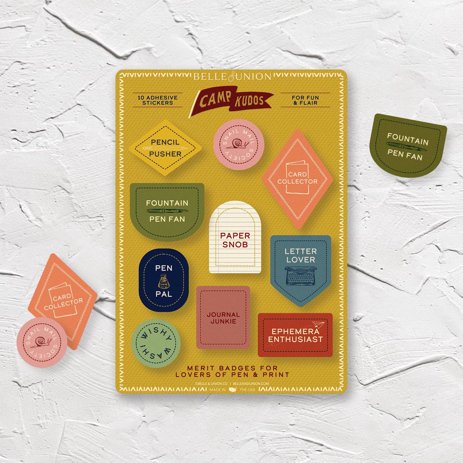 O que começou em 2012 como uma empresa exclusivamente de venda por grosso, floresceu em algo que aquele jovem de 23 anos nunca poderia ter sonhado. Com um lançamento de estreia na National Stationery Show (que descanse em paz), até à abertura de uma loja em 2018 na ensolarada San Antonio, Texas, a Belle & Union manteve-se firme na criação de presentes e cumprimentos bonitos e atenciosos, todos 100% fabricados nos Estados Unidos. Como criadora e lojista, vejo ambos os lados - a necessidade de produtos criativos para os nossos clientes com margens que sustentem os nossos resultados. Muitos dos designs que vê nasceram de necessidades que vimos na nossa loja, peças em falta no mercado. (Olá notas em caixa e kits de escrita de cartas!) O nosso compromisso com a produção nacional é uma questão de coração, como uma forma de honrar os nossos soldados e os seus sacrifícios, enquanto via o meu próprio marido partir em defesa do nosso país. O patriotismo parece muito diferente hoje em dia, e está turvado pela política e por crenças muitas vezes equivocadas. Mas o que eu sei é que este país é composto por pessoas maravilhosas, de todo o lado, e é isso que o torna especial. Esta coleção, esta empresa, é para eles. Para os sonhadores e os realizadores, para as mães que fazem acontecer, e para todos os que estão no meio.