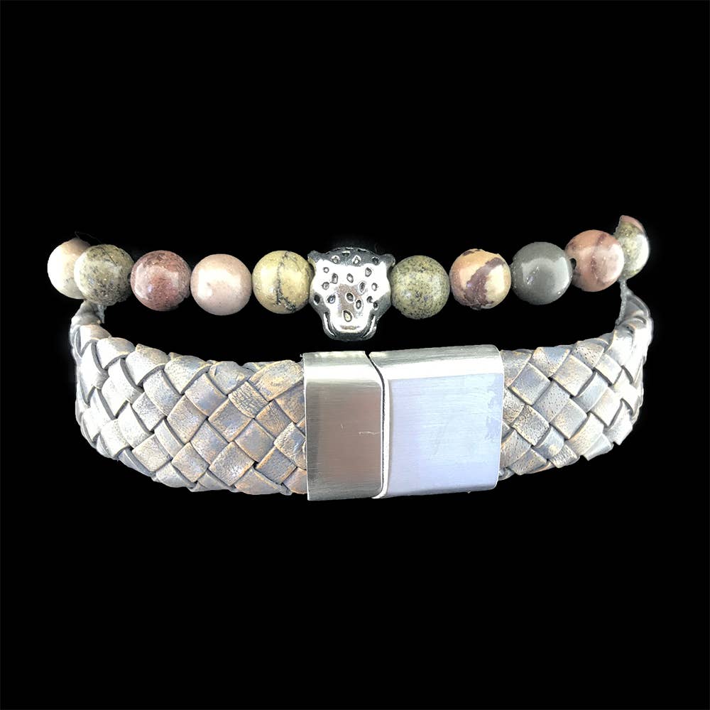 Joias Eufrasia Contemporâneo, autêntico, mundano Esta joia original é inspirada nos continentes da Europa, África e Ásia. As pulseiras elegantes são feitas à mão e consistem em belos produtos naturais: couro, vidro e metal. As pulseiras são vendidas por conjunto e há uma opção de peças robustas ou mais refinadas. Eles são embalados com estilo em uma caixa de presente de luxo. É bom dar de presente ou apenas como um presente para você!