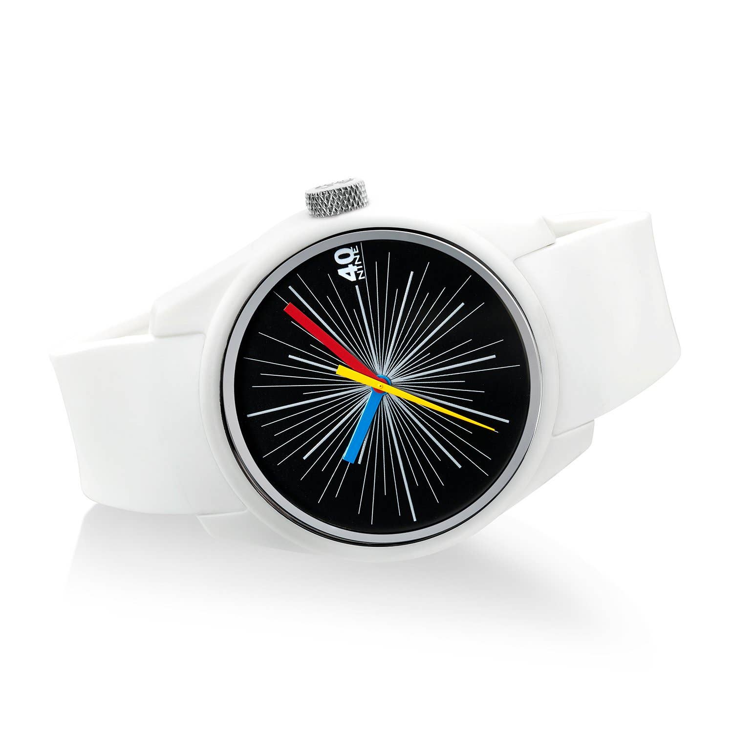 40Nine é uma linha de relógios que é propositalmente curta em tecnologia, mas grande em estilo e design. Criada como uma reação à confusão visual e tecnológica, a linha ressoa com pessoas que procuram um relógio simples, elegante e divertido. A melhor parte é o preço acessível, permitindo que os clientes colecionem uma variedade de estilos. A linha é feita de polímero leve e durável com base em dois tamanhos de caixa - o grande tem 43 mm e o pequeno é 35 mm. Todos os relógios 40Nine têm movimentos de quartzo e são resistentes à água até 50 metros. Os relógios 40Nine agora possuem mais de 80 estilos diferentes em 2 tamanhos para homens e mulheres. Nossas linhas BASIC são nosso modelo básico, simples e preciso. Cada coleção é uma elevação do modelo básico. O ECLECTIC é divertido e fantasioso. O SOLO é a inovação e o TRIO é uma brincadeira com o mostrador exclusivo do SOLO. O SPARTAN é o avanço da coleção, com seu recurso de data e visibilidade noturna. Nossas mais novas coleções PARISIAN e LA ROMANA contam uma história de nostalgia. Projetado com algarismos romanos, esses relógios são clássicos com um toque moderno.