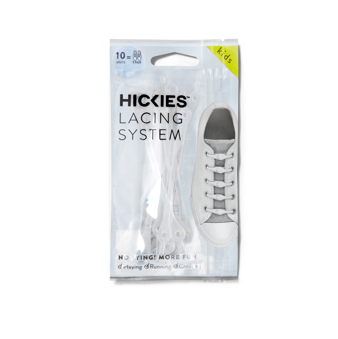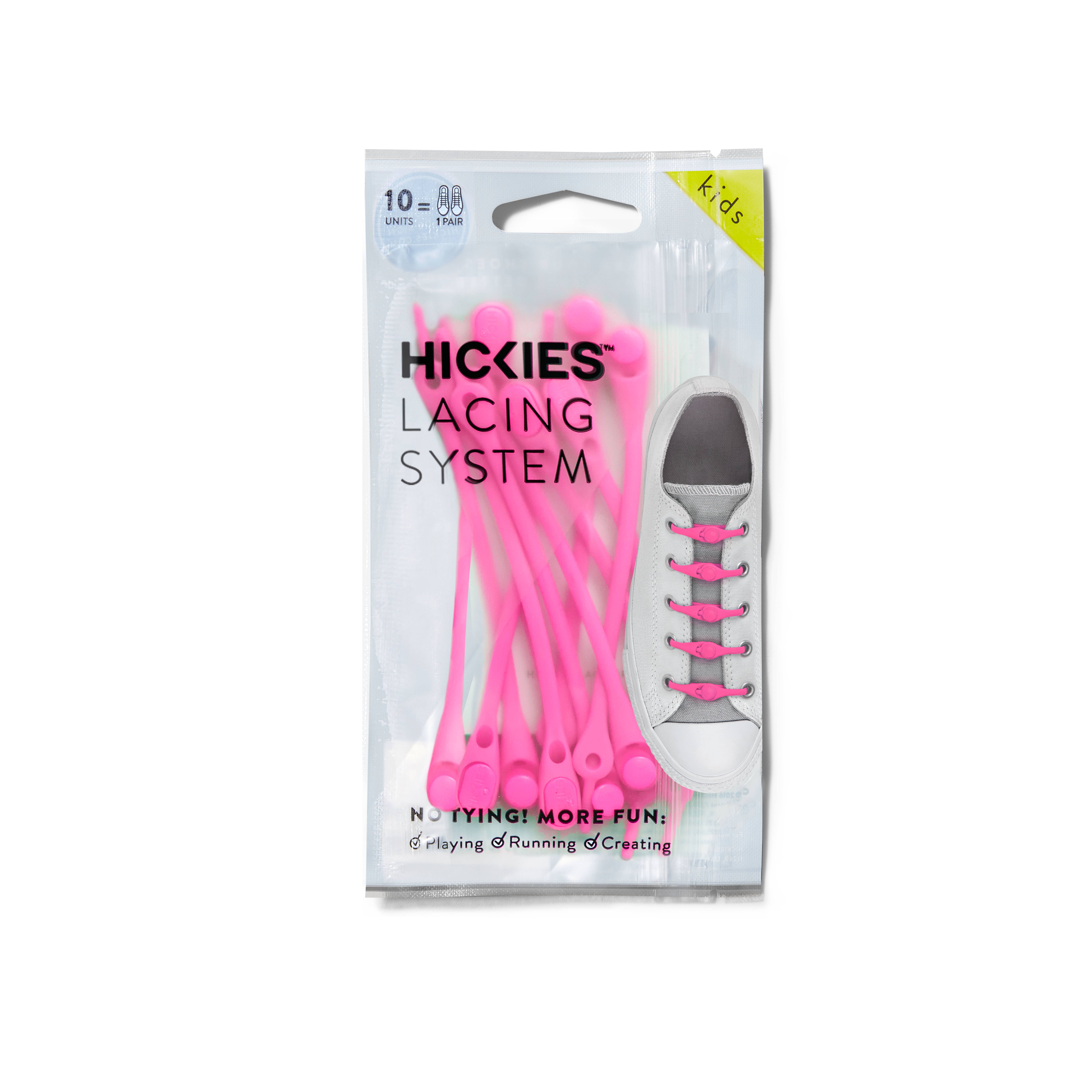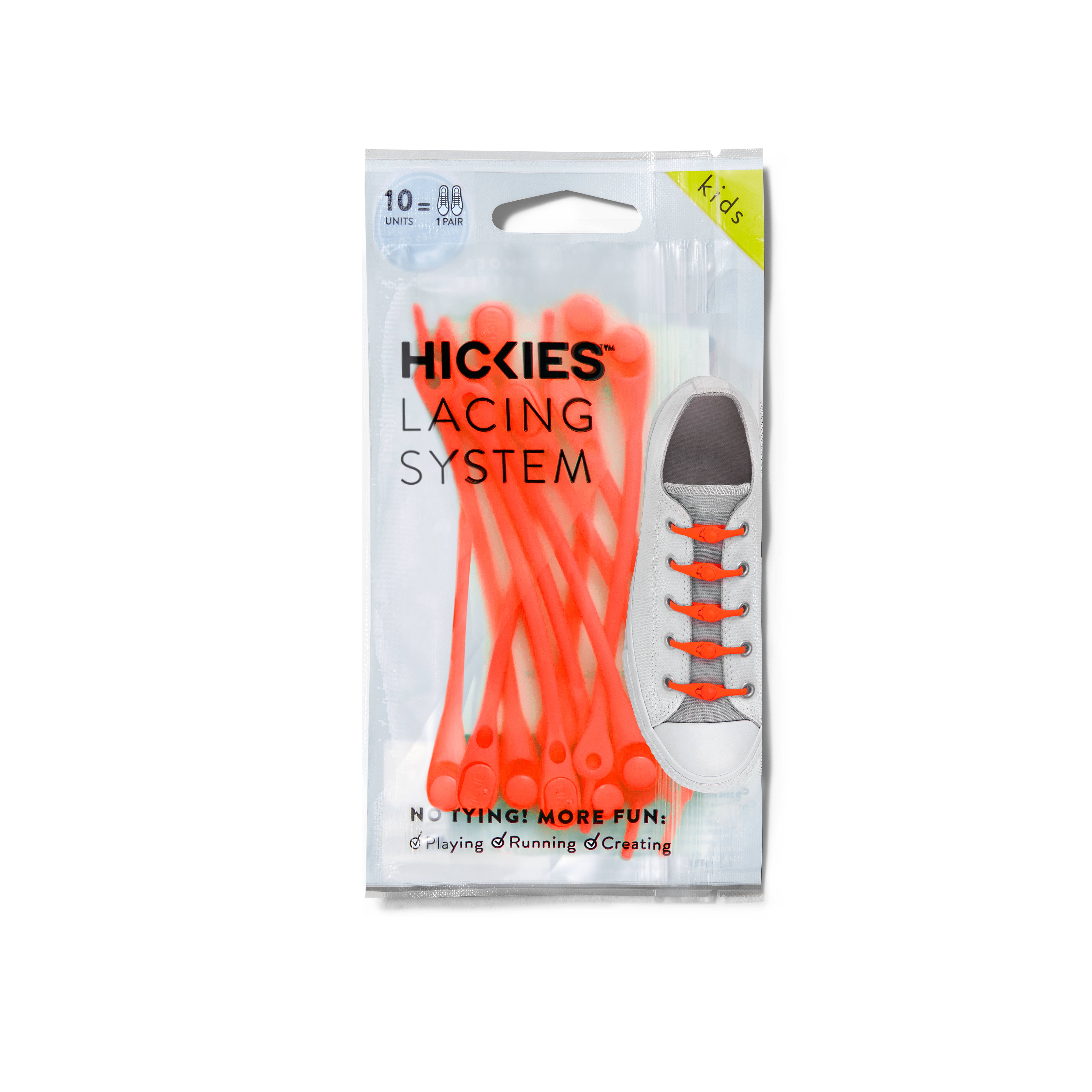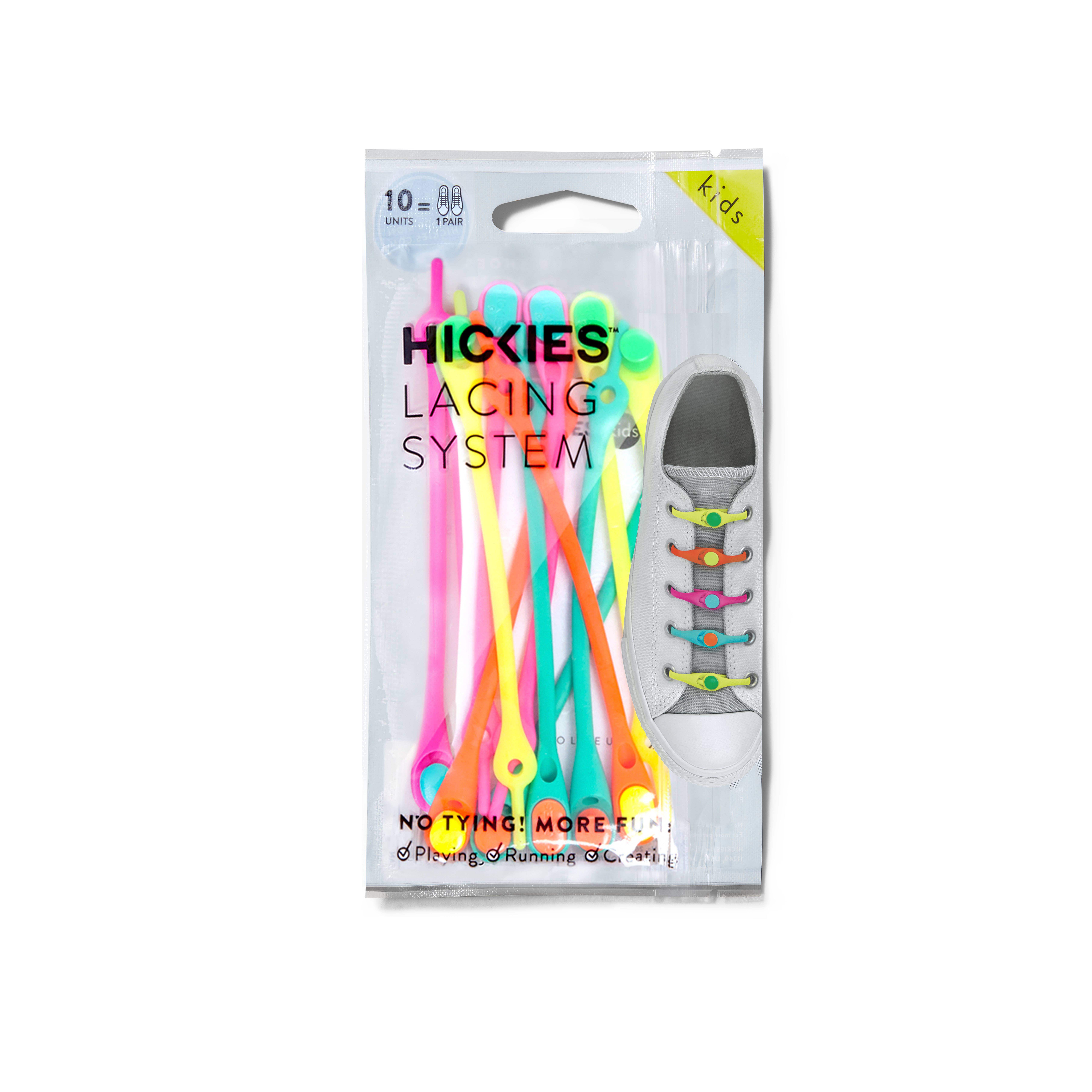 Criamos os cadarços HICKIES No-Tie, para garantir que nada fique no seu caminho. Nada no caminho daquele primeiro grande jogo, aquele voo de última hora para casa, aquela 26ª milha, aquele último mês de recuperação. Quem diria que cadarços sem amarração poderiam facilitar as coisas para muitas pessoas? Para crianças, para aqueles com limitações, para mães serem, para atletas. Realmente, para qualquer um - sim, até você. Então, nos propusemos a mudar isso com HICKIES - pequenos cadarços com grande impacto. Porque a vida é feita para ir a lugares e nunca acreditamos muito em ficar parados. Hickies é um produto para toda a família. Ótimo acessório de calçado feminino, acessório de calçado masculino e acessório de calçado infantil. Instale uma vez e nunca amarre seus sapatos novamente. Personalize seus sapatos ou tênis com um visual limpo e elegante. Hickies é o melhor presente sob $20.00. Inovador, colorido e divertido. Seu design ganhou muitos prêmios internacionais. Hickies tem um portfólio robusto de patentes Estamos disponíveis em mais de 20 países. Estoque para as férias. “Seus fones de ouvido ficaram sem fio, não é hora de seus tênis ficar sem renda?”