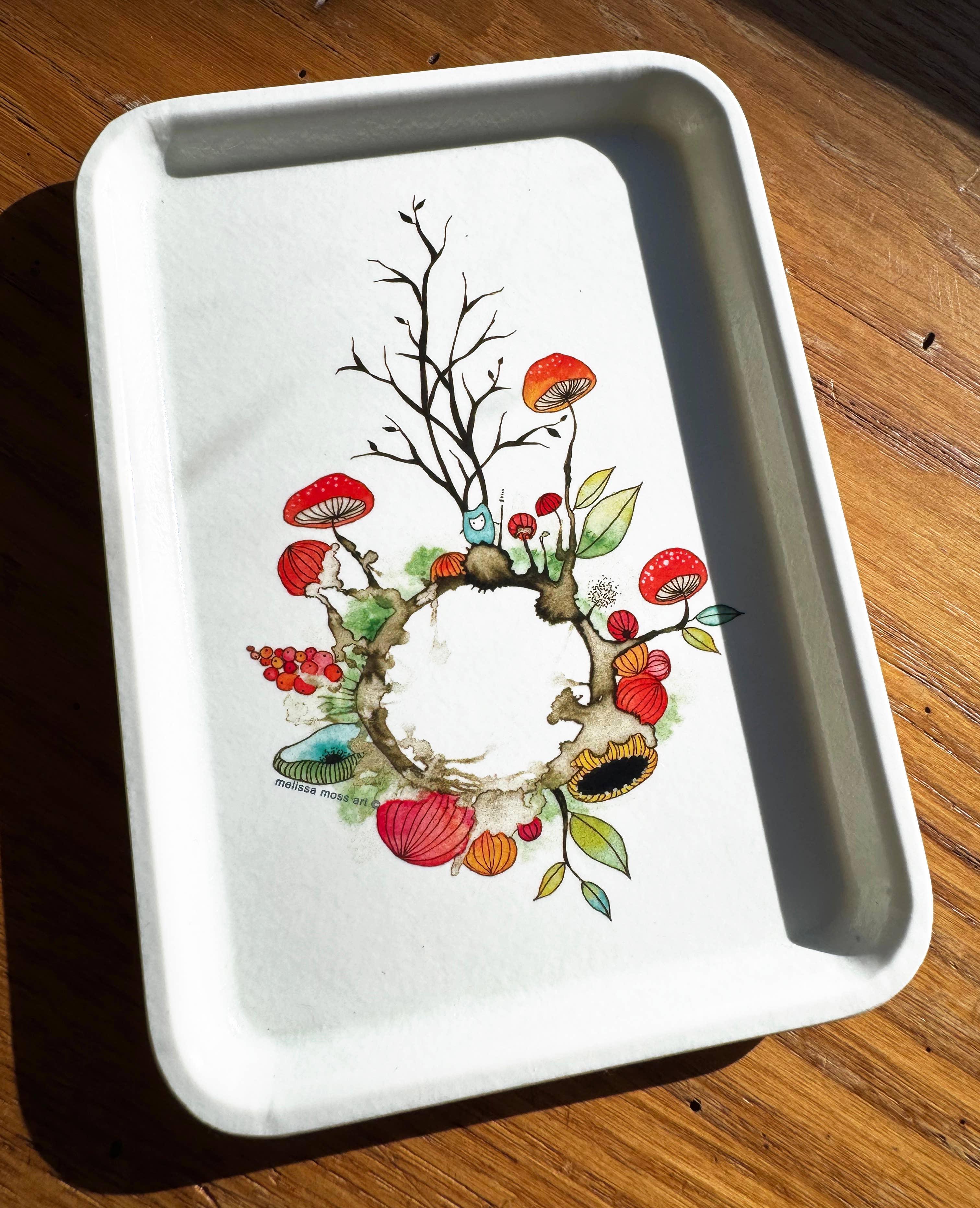 Melissa Moss, da Asheville, NC, tem um fundo em psicologia das cores e é bem versado nos significados das cores e seus tons subtis. Trabalhando com acrílico, caneta e tinta, e resina, Melissa combina cores de forma prendente, criando um mundo colorido que é a sua própria invenção. As pinturas de Melissa de árvores delicadas e flores de outro mundo podem representar criaturas adoráveis em perigo ou flores cor-de-rosa que rodeiam um forlorno. Pormenores detalhes nem sempre são evidentes à primeira vista. Muitas vezes fantasiosa, esta é a paisagem subterrânea que se encontra debaixo de um conto de fadas de crianças ou de um desenho animado de sábado de manhã. A sua coleção “mudas” foi inspirada na tenacidade da natureza e como, mesmo nas piores condições, vai brotar uma árvore ou uma pequena flor. Sentindo-se triste e frustrada com as notícias deste país e de todo o mundo, Melissa começou a trabalhar nestes para lhe dar uma fuga. São “mudas” esperançosas e tenazes em busca de um mundo melhor. O trabalho de Melissa expôs em galerias de Hong Kong, Nova Iorque, Los Angeles, Chicago, São Francisco, Pittsburgh, Philadelphia, Indianapolis, Savannah e Asheville.