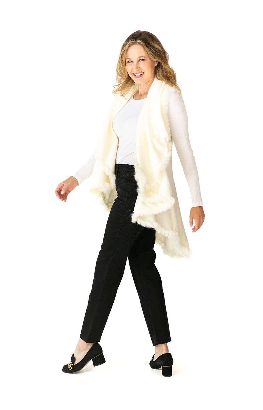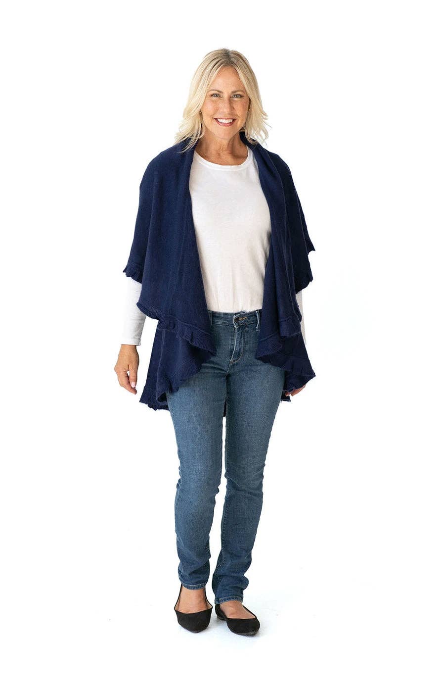 Heidi desenha roupas a pensar em todas as mulheres. Ela acredita que todas precisamos de uma peça fácil de usar e duradoura no nosso guarda-roupa, que possa ser usada de várias maneiras com diferentes conjuntos, do dia para a noite. Ela valoriza a inclusão, por isso desenhou a capa xale para favorecer mulheres de todos os tamanhos. Heidi lançou a marca há 23 anos, como uma mãe ocupada. Depois de a sua pashmina estar sempre a cair e ser um incómodo de usar, ela decidiu desenhar uma capa com buracos para os braços para uma cobertura sem esforço do dia para a noite. Este xale é um design único destinado a ser usado durante todo o ano e em todos os climas. Devido ao design versátil, pode ser usado como capa, colete ou poncho. É perfeito para usar todos os dias com estilo e conforto, algo que Heidi acha que todas as mulheres precisam. Subsequentemente, foi criado o top lenço, para permitir flexibilidade numa opção mais leve. Este é destinado a ser usado em volta dos ombros ou pescoço, mas algumas mulheres adoram-no até como uma cobertura. Ambos os estilos são peças fáceis de viajar, e não há tal coisa como ter demasiadas. Heidi está entusiasmada por lançar a linha no mercado grossista no início de 2026, e partilhar a roupa única e versátil que tantas mulheres passaram a adorar. Um tamanho serve a maioria, permitindo maximizar a variedade e comercializar as muitas opções de cores que oferecemos.