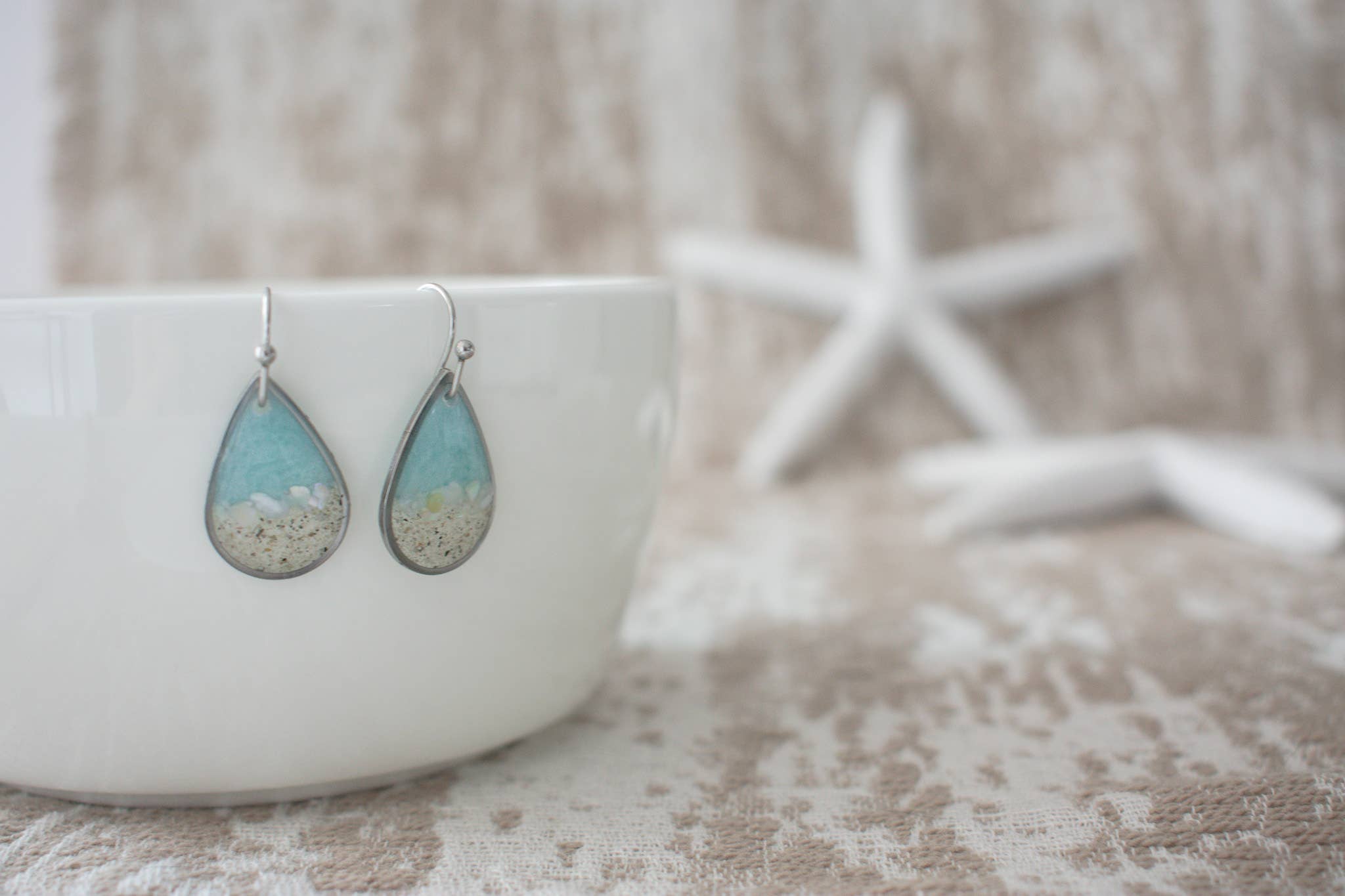Sou uma garota do noroeste do Pacífico que prospera nas praias da Carolina do Norte. Sempre adorei ter o oceano por perto e um bom artesanato, então as joias que faço são um trabalho de amor. Cada conjunto é único - sem dois pares exatamente iguais. Minha esperança é que minhas joias feitas à mão ajudem a conectar as pessoas a memórias passadas, férias futuras e a magia que vem junto com um bom dia na praia.